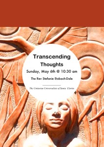 This service is entitled “Transcending Thoughts”. Which caused at least one Facebook friend to ask me if that meant I’d be sharing thoughts ABOUT transcending (something you might expect from “mainstream” clergy). Or, if thoughts themselves would be transcended during this hour (meaning, if we would be encouraged to “not think”)!