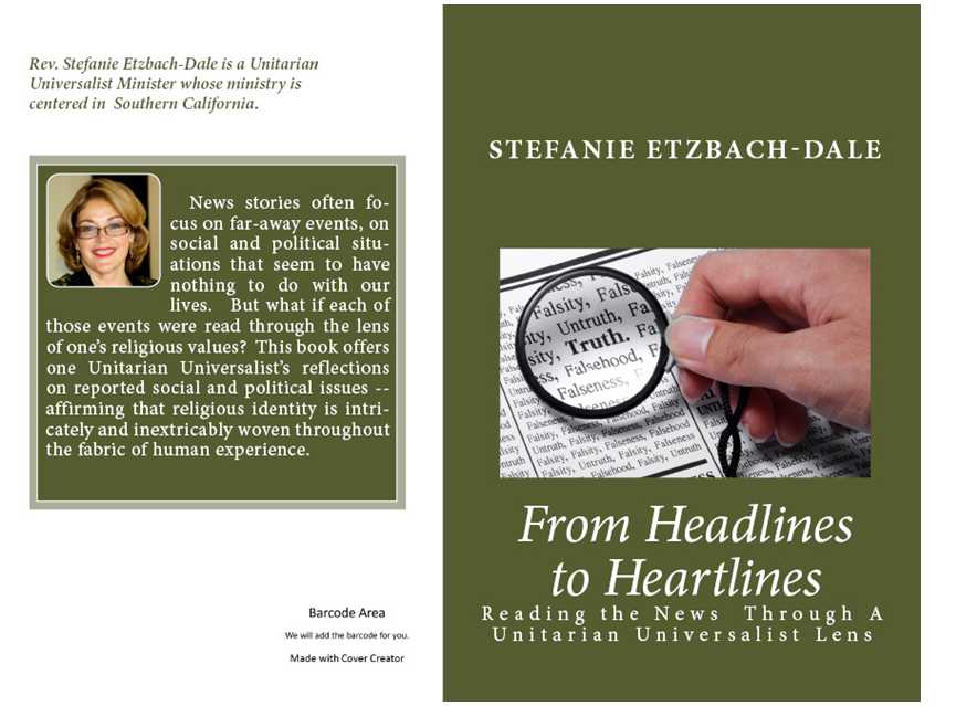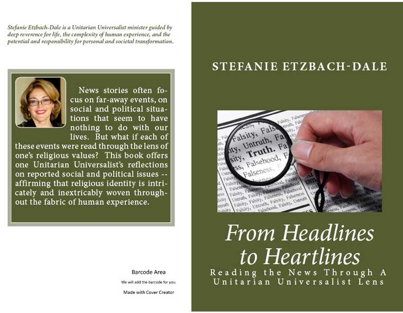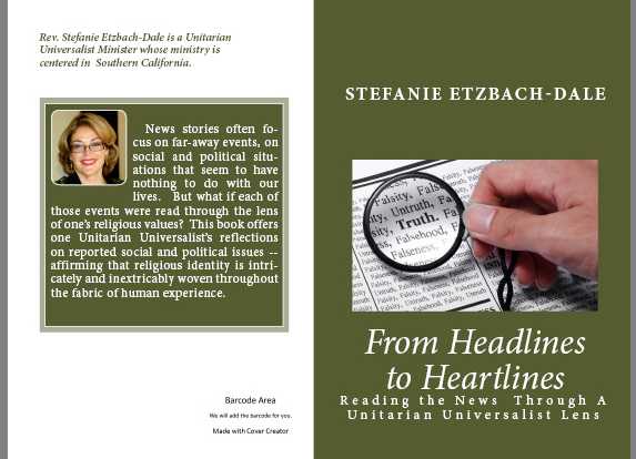 My first book, From Headlines to Heartlines, contains a series of reflections on current events, from a Unitarian Universalist perspective – everything from clergy sexual abuse to immigration reform, the presidential inauguration to “don’t ask don’t tell”… The intent is to draw attention to the inseparable link between personal religious values and the way we experience and respond to the world.